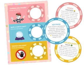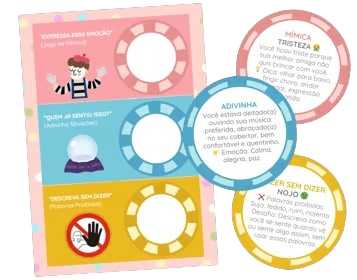 Uma brincadeira divertida de adivinhação que convida as crianças a representarem emoções por meio de mímicas, gestos, expressões faciais e corporais. Estimula de forma leve e criativa o desenvolvimento da comunicação não verbal, escuta ativa e competências relacionais.