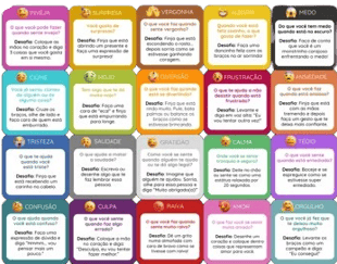 Jogo com 36 perguntas que ensinam sua criança a entender o que sente, porque sente e o que fazer com isso. É só jogar o dado, tirar uma carta do baralho e responder a uma pergunta contextualizada. Um jeito inteligente de ensinar como lidar com sentimentos com os personagens que as crianças amam!